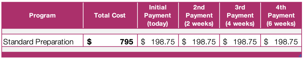 Once you decide which program you wish to do, we send you our ‘Terms of Service Agreement’, which sets out our obligations to you and your commitment to the program. We will then invoice you for the preparation fee.